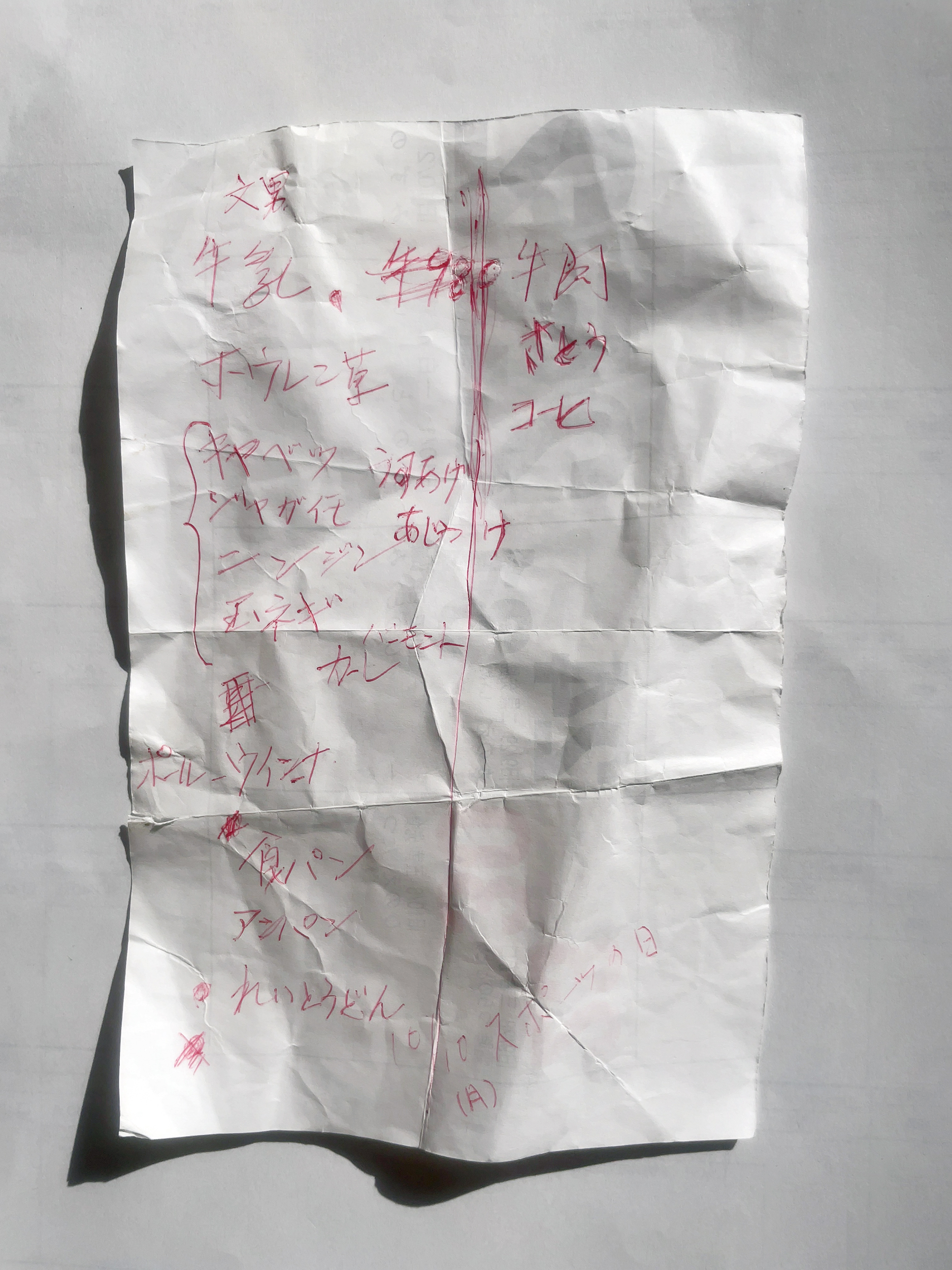 お買い物メモの落とし物